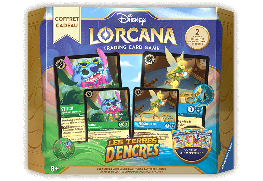 L’inondation a emporté de précieux éclats de Lore jusque dans les Terres d’Encres ! Désireux de récupérer ce qui a été perdu, d’aventureux Illumineurs se dirigent vers les confins inconnus du royaume. Merveilles et mystères les attendent à chaque tournant, mais leur but demeure : Les éclats de Lore éparpillés doivent être ramenés dans le Hall de Lorcana… avant qu’ils ne tombent entre de mauvaises mains.