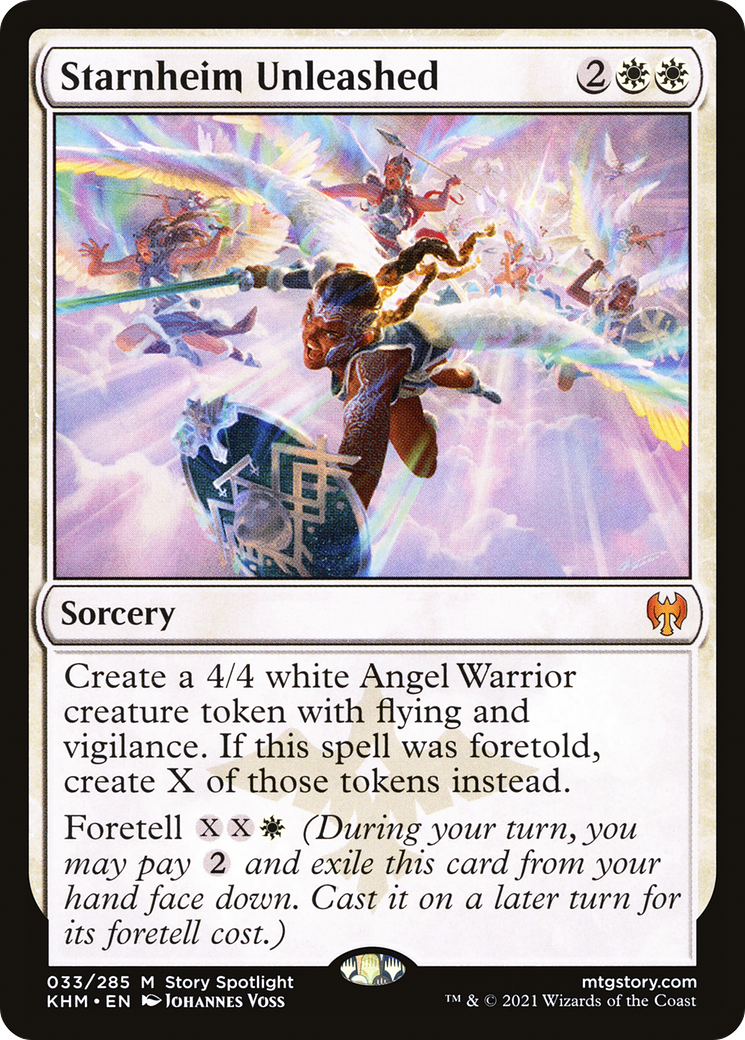 Create a 4/4 white Angel Warrior creature token with flying and vigilance. If this spell was foretold, create X of those tokens instead.