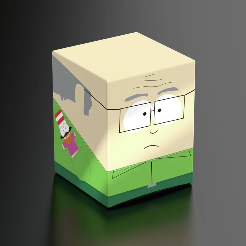 Collectible box for storing TCG decks, tabletop gaming accessories, and/or collectibles. The Mr. Garrison Squaroe from the South Park™ edition holds up to 100 cards in double protective sleeves if used as a deck box. Squaroes are made from 78% renewable recources and fit perfectly into the separately available Collectors Case.