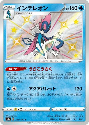 Inteleon - 226/190 226/190/undefined - S4a Shiny Star V Holofoil (Japanese)
