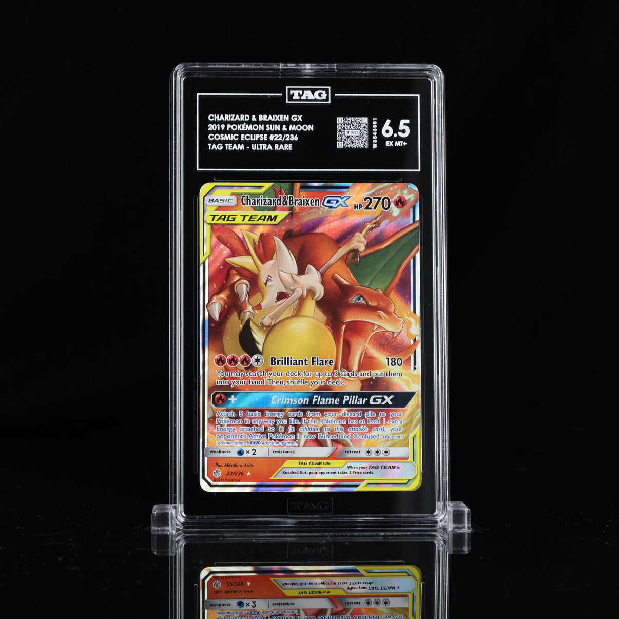 CHARIZARD & BRAIXEN GX #22/236 COSMIC ECLIPSE TAG 6.5 Cert #W3543981
