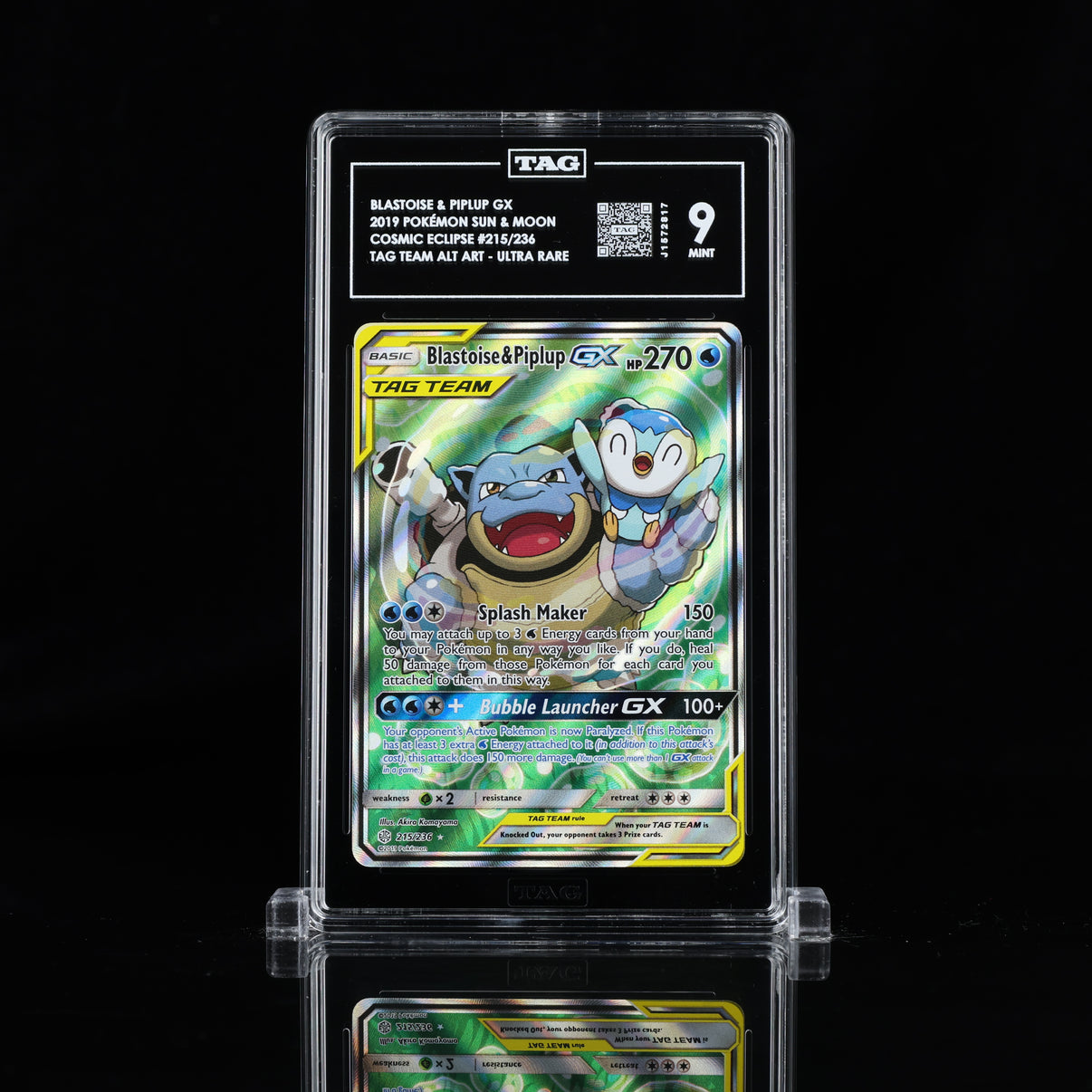 BLASTOISE & PIPLUP GX #215/236 COSMIC ECLIPSE TAG 9 Cert #J1572817