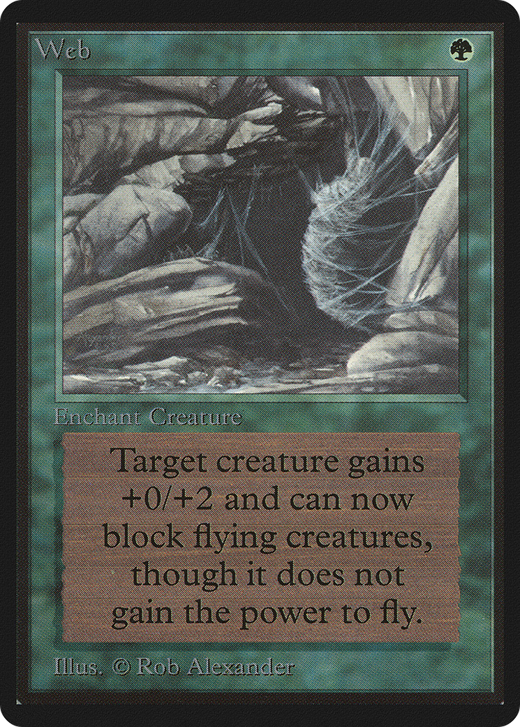 Enchanted creature gets +0/+2 and has reach. (It can block creatures with flying.)