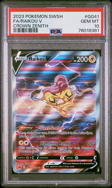 2023 POKEMON SWORD AND SHIELD CROWN ZENITH #GG41 RAIKOU V CROWN ZENITH PSA 10 #76018381