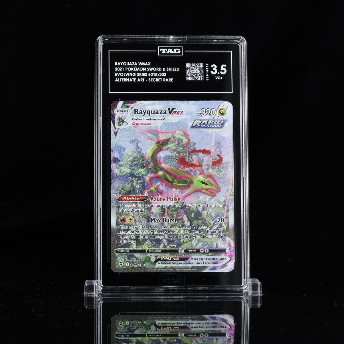 RAYQUAZA VMAX #218/203 EVOLVING SKIES TAG 3.5 Cert #J1914432