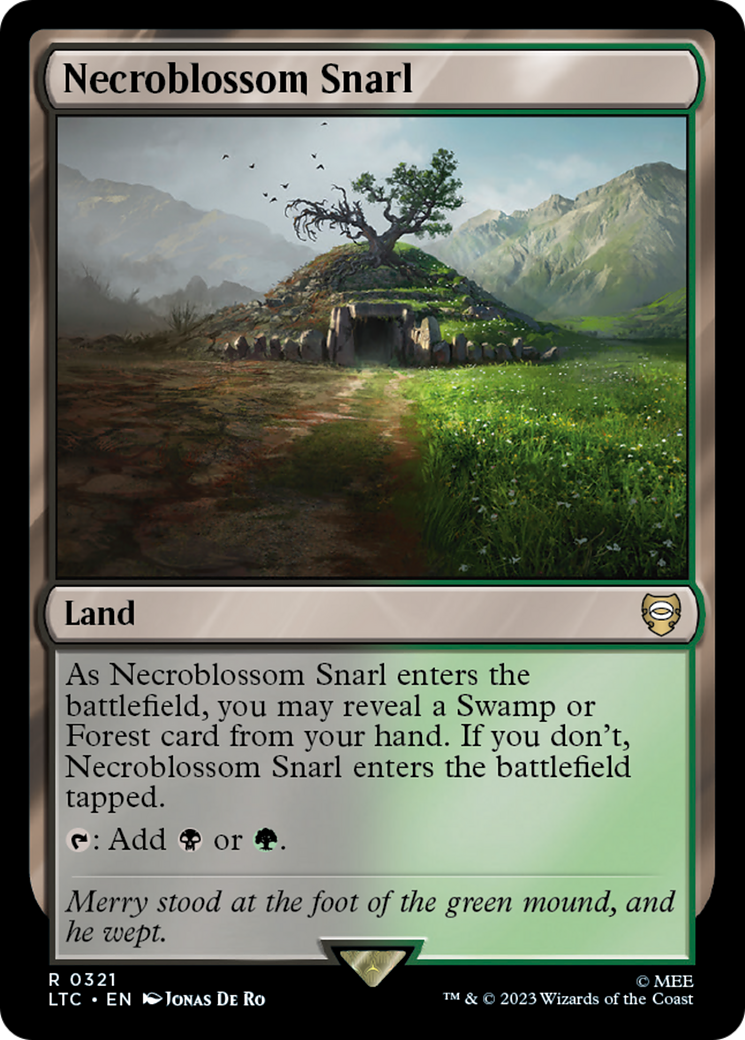 As Necroblossom Snarl enters the battlefield, you may reveal a Swamp or Forest card from your hand. If you don't, Necroblossom Snarl enters the battlefield tapped.
