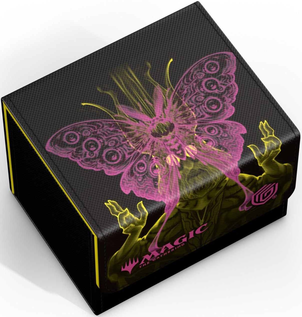 The Sidewinder 100+ Xenoskin is a high-quality TCG deck box that offers premium card protection thanks to its resistant Xenoskin material, microfiber inner lining, and strong magnetic closure, while still granting easy and convenient access to the deck inside. The deck boxes are printed in full color with officially licensed artworks from Magic: The Gathering’s upcoming set “Duskmourn”. The Sidewinder 100+ Xenoskin is optimized to hold 100 double-sleeved or 120 single-sleeved cards in Ultimate Guard sleeves.